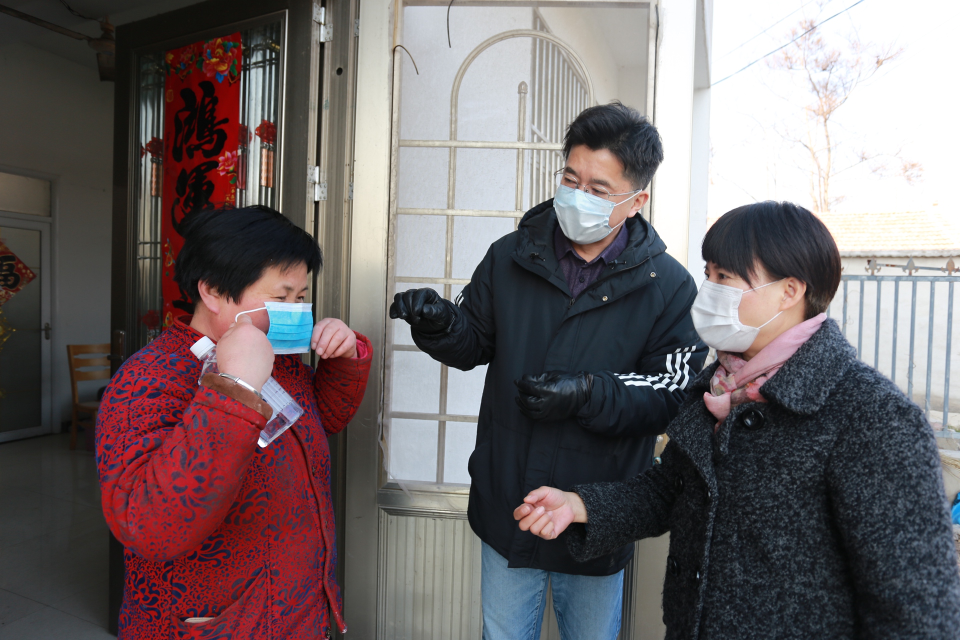火神廟村黃莊村民黃傳平雙手顫顫巍巍地接過(guò)抗疫防護(hù)物資,開(kāi)心地說(shuō):“我一個(gè)月就戴這一個(gè)口罩,沒(méi)的換,現(xiàn)在好啦,有口罩戴啦。太謝謝你們送來(lái)口罩,酒精和消毒液,還有疫情防控知識(shí),這是今年我收到的最好禮物!” 王獻(xiàn)忠書(shū)記不僅給他們送來(lái)了口罩、酒精等抗疫防護(hù)物資,還耐心地為他們講解口罩的佩戴方法和酒精的正確使用方法。