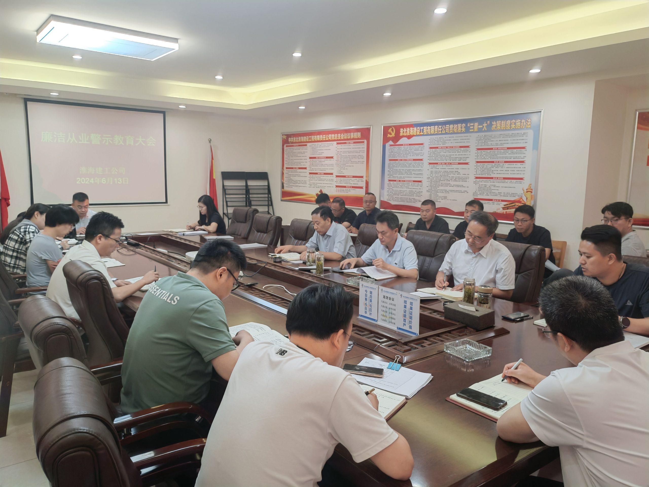 2024年6月13日上午,淮海建工公司召開廉潔從業(yè)警示教育大會(huì),公司班子成員、部門負(fù)責(zé)人、項(xiàng)目經(jīng)理參加了會(huì)議。