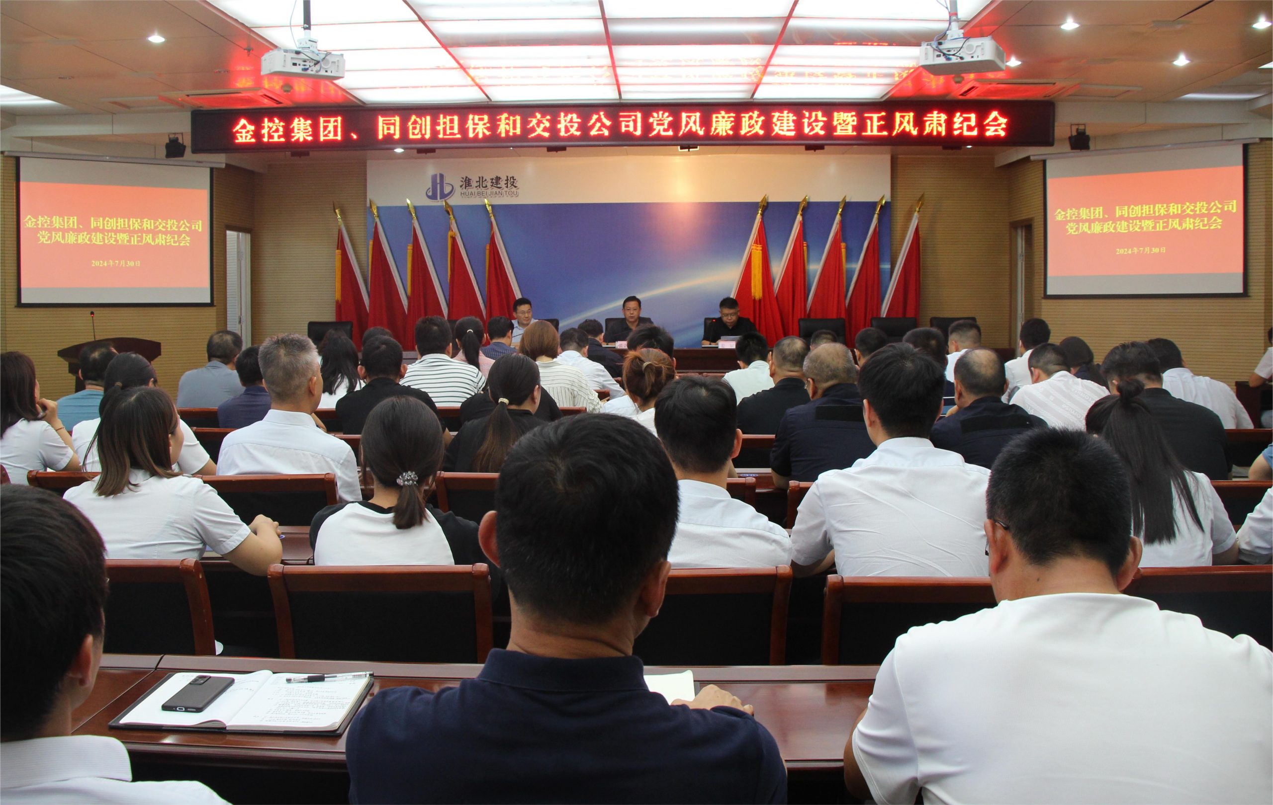 7月30日下午,金控集團、同創(chuàng)擔保和交投公司在集團公司二樓會議室召開黨風廉政建設暨正風肅紀會。集團黨委委員、副總經理張立哲主持會議,集團黨委委員、紀委書記、監(jiān)察專員姜斌、集團公司總經理助理朱濤出席會議并講話。金控集團、同創(chuàng)擔保及交投公司中層以上管理人員及黨員骨干、紀檢監(jiān)察部相關人員參加會議。